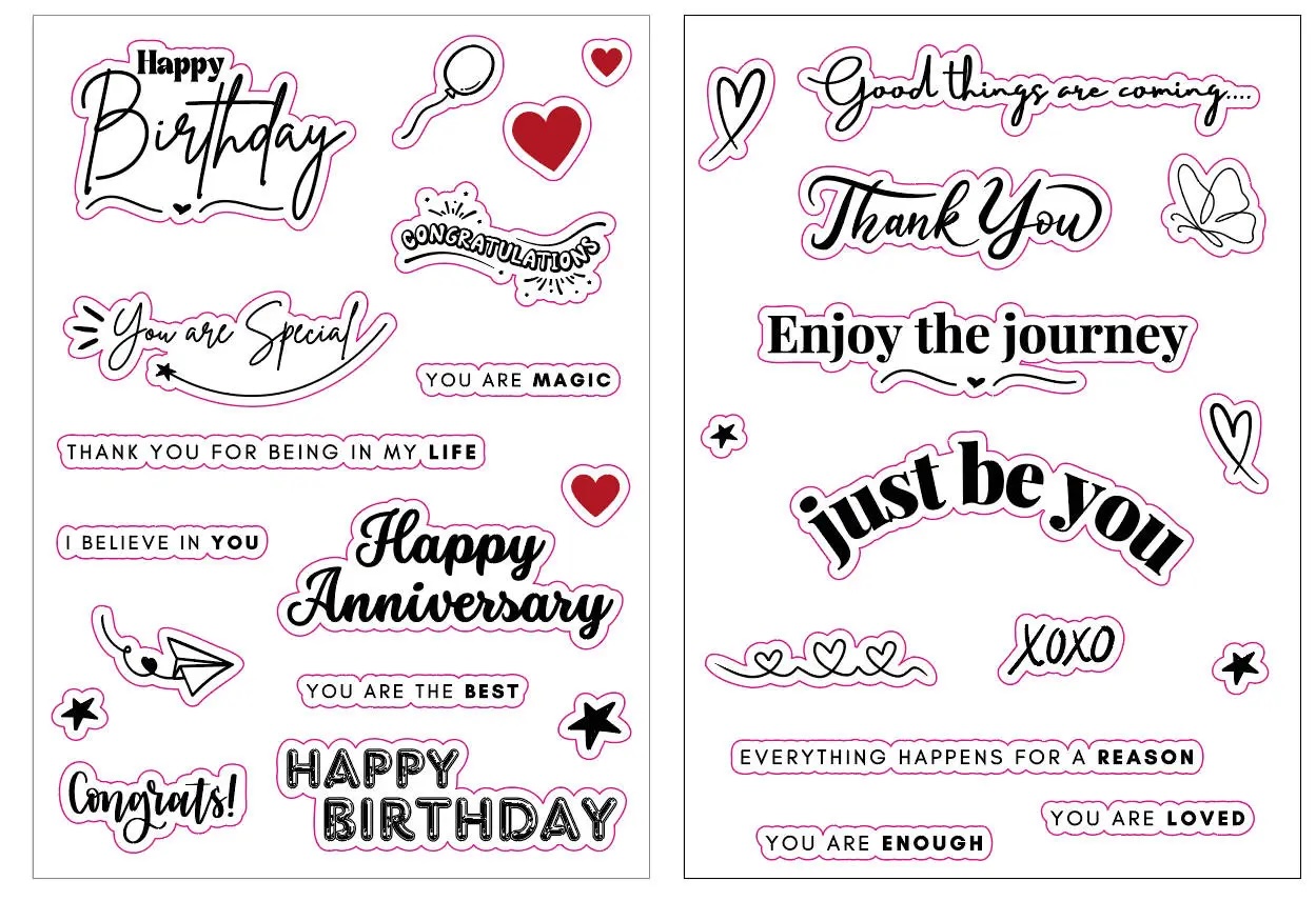 Customize your card! Each card comes blank with a set of transparent-based stickers with varying messages. Select your sticker, and customize your card’s message.